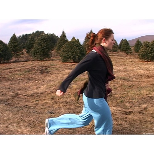 Jayne wishes to run a full marathon and hires a trainer to make her prepare for the event. We see Jayne running and complaining that she needs to use the toilet, but her trainer won't let her dash into the woods to relieve herself. As her situation grows more dire, the trainer finally agrees to let Jayne stop running, but instead she has to do leg stretches which involve bending. Her full bladder is really suffering now, and before long Jayne is crossing her legs and dancing instead of stretching. Jayne does wet her jogging pants, but the cold air coupled with all the jogging around results in her releasing a lot less than she thought she had to. There was more to come, but she just can't let it go on film. The movie has some nice touches, but don't buy it expecting to see one of Jayne's massive floods.